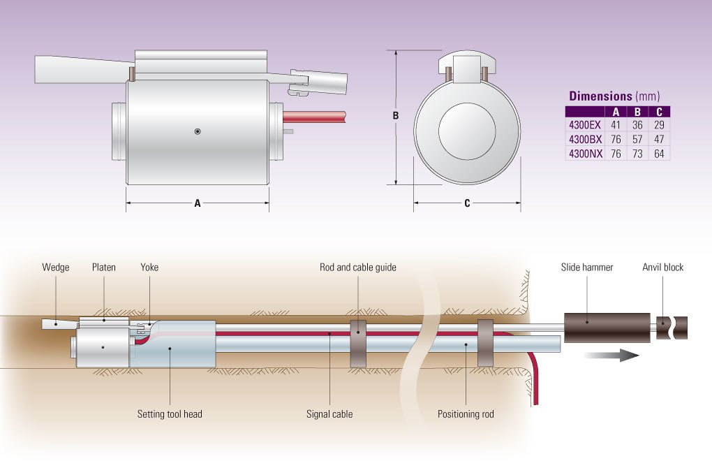 Model 4300 Vibrating Borehole Stressmeters dirancang untuk mengukur perubahan tegangan pada batuan dan dapat dipasang di lubang bor hingga kedalaman 100 kaki. Stressmeter terdiri dari cincin pembuktian baja berkekuatan tinggi yang terpasang erat pada satu diameter di dalam lubang bor dan kawat bergetar yang dikencangkan melintasi diameter lainnya di dalam stressmeter. Perubahan tegangan batuan menyebabkan perubahan terkait dalam frekuensi resonansi getaran dari kawat yang memberikan tegangan yang dibaca oleh Model GK-404 atau Model GK-405 Vibrating Wire Readouts.