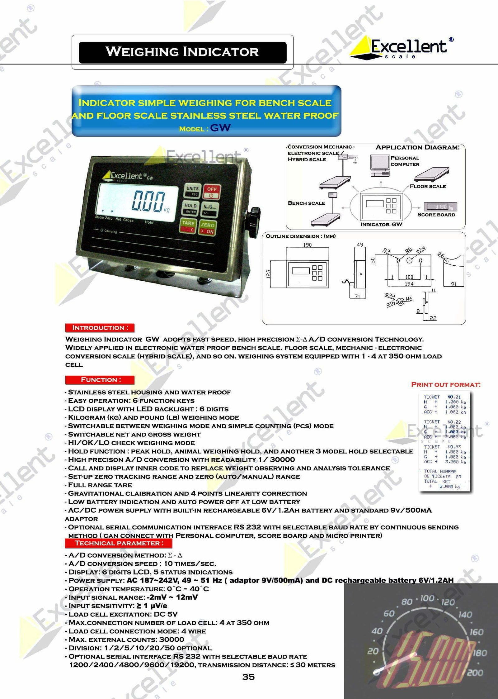 Fungsi penimbangan bench scale , floor scale , RS 232 , score board & koneksi ke external printer