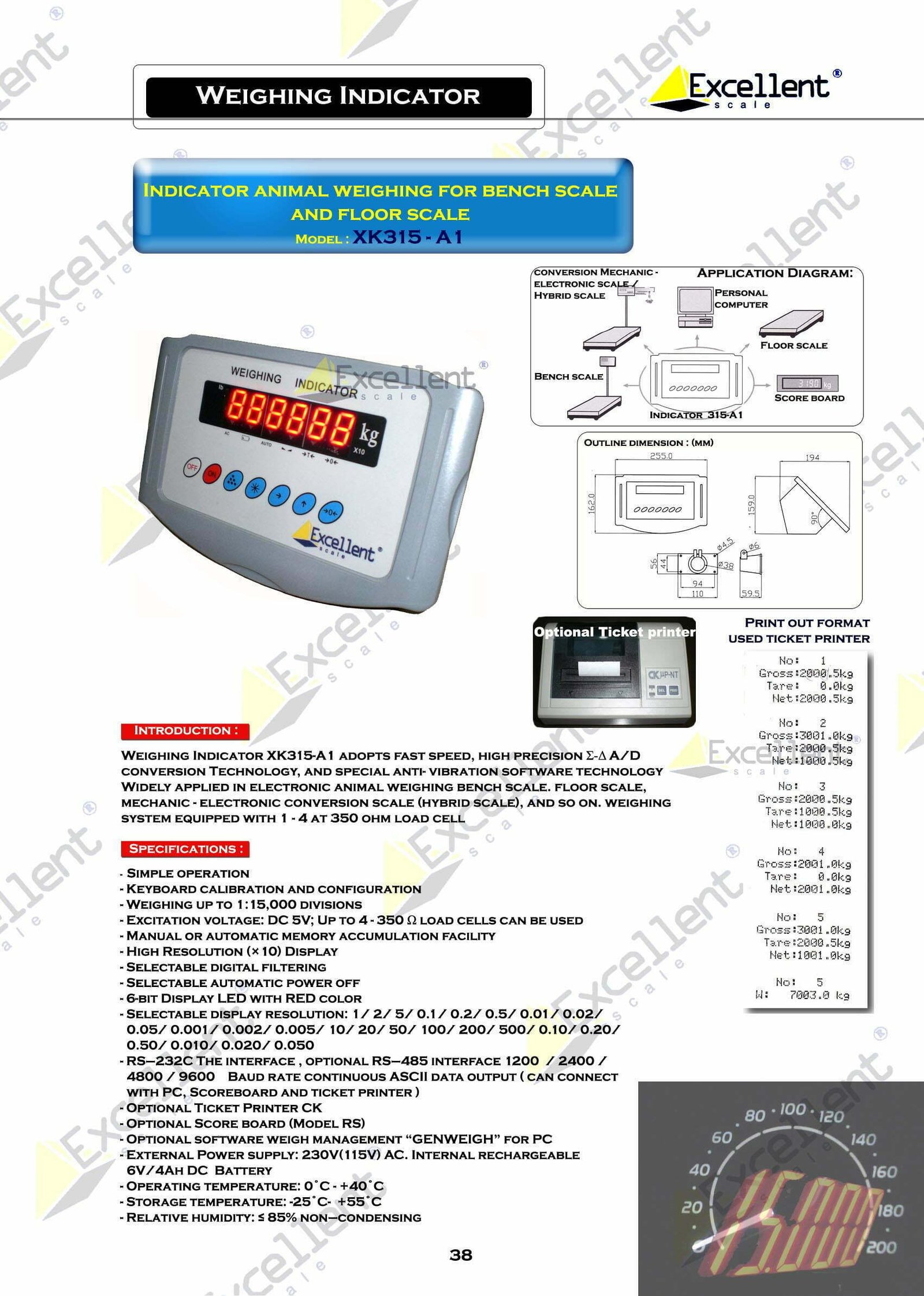 Fungsi : penimbangan animal , bench scale / floor scale , RS232 , score board serta koneksi ke external printer