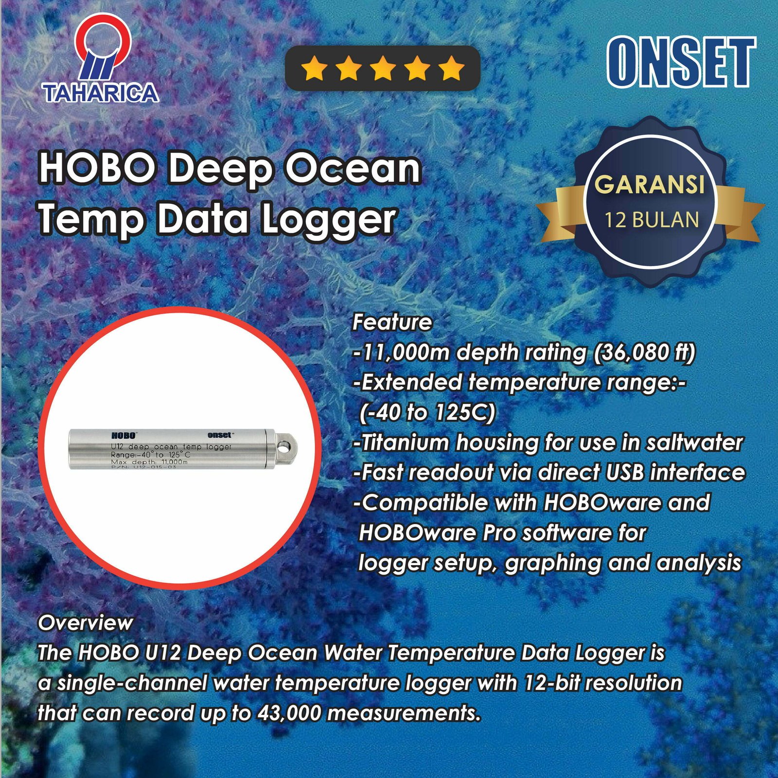 The HOBO U12 Deep Ocean Water Temperature Data Logger is a single-channel water temperature logger with 12-bit resolution that can record up to 43,000 measurements. With its robust titanium housing, this logger is designed to withstand ocean extremes of depth and temperature.