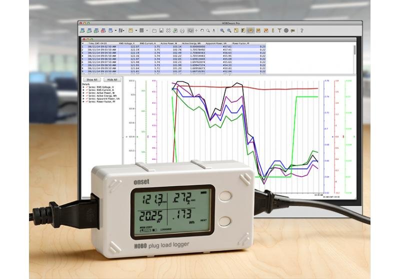Onset’s HOBO Plug Load Data Logger is a high-accuracy, easy-to-deploy data logger that measures and records the power and energy consumption of 120V plug loads from office equipment, vending machines, and other devices.