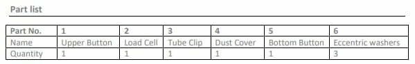 Technical Specifications HM14H1 Load cell + Mounting kit