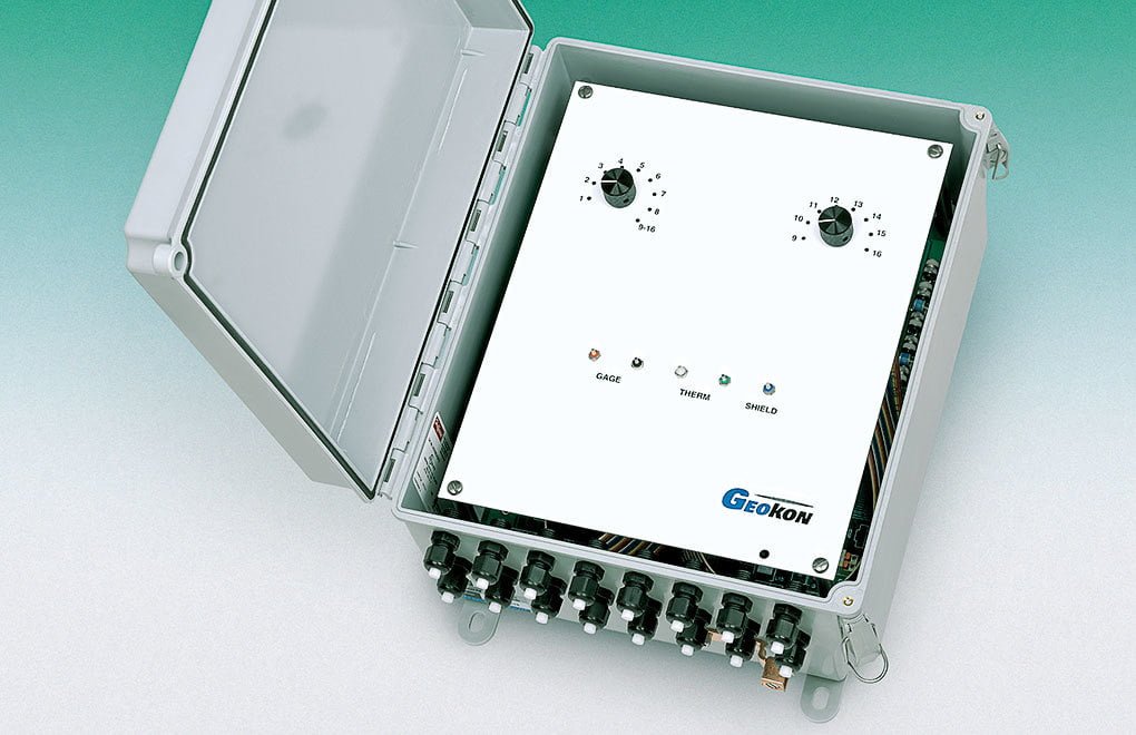 Model 8032 Multiplexer memperluas jumlah saluran yang dapat dibaca oleh Model 8600-1 / 2 Datalogger, Micro-1000 Datalogger atau Model GK-404 atau GK-405 Pembacaan Kawat Getar. Saluran dilindungi terhadap lonjakan tegangan dengan penahan lonjakan plasma tripolar dan penahan lonjakan bipolar. Sakelar manual opsional dapat dihubungkan ke papan terminal yang memungkinkan akses mudah ke setiap saluran multiplexer untuk melakukan pengukuran manual dengan pembacaan portabel bersamaan dengan yang diambil secara otomatis dengan datalogger.