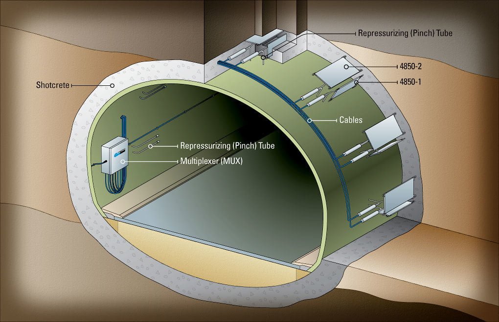 Model 4850 NATM Style Shotcrete Stress Cells dirancang untuk pengukuran tegangan tangensial (4850-1) dan radial (4850-2) dalam lapisan terowongan shotcrete. Sel-sel terdiri dari dua pelat baja persegi panjang yang dilas bersamaan di sekitar pinggiran dengan cairan de-aired yang menempati ruang antara pelat. Sebuah tabung pendek menghubungkan sel ke transduser tekanan kawat yang bergetar. Sebuah tabung pratekan disediakan untuk memperluas sel setelah beton telah sembuh. Sel jenis ini juga digunakan untuk pengukuran tegangan pada beton massa.