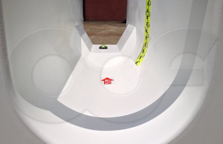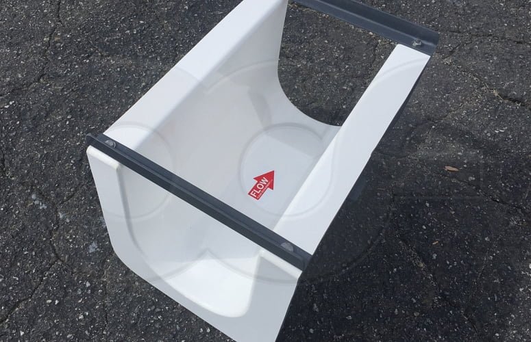 detail konfigurasi penampang dan tenggorokan dari flume Palmer-BowlusDirancang untuk pemasangan di saluran manhole yang ada dan sejajar dengan pipa saluran pembuangan, Palmer-Bowlus Flumes memiliki penampang berbentuk U untuk meminimalkan transisi aliran melalui flume. Bagian tanjakan trapesium yang ditinggikan menciptakan tenggorokan Flume Palmer-Bowlus. Saat lantai flume naik, dinding sampingnya juga berkontraksi.