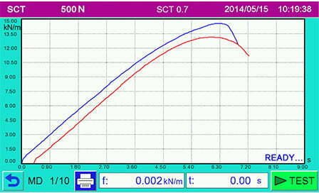 Alat uji ketahanan kompresi pendek SCT untuk kertas kemasan, peralatan yang telah menggantikan uji RCT, terutama pada kertas dengan gramatur rendah, sedang tren di pasar kertas. Layar sentuh berwarna dengan kurva kompresi dan statistik lengkap. Kemungkinan menyesuaikan jarak uji 0,7 mm menurut standar ISO dan Tappi, dan hingga 0,3 mm untuk kertas yang sangat ringan dan uji R&D. Kemungkinan menghubungkannya ke PC melalui perangkat lunak Novilog dan REGISTRA kami. Output USB untuk koneksi ke printer dan dapat mencetak hasil dan statistik tanpa memiliki PC.