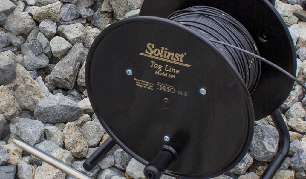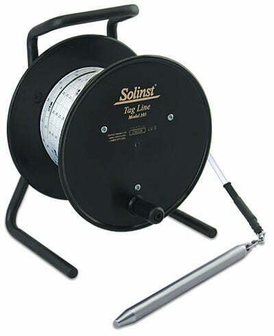 Garis Tag Solinst Model 103 menggunakan pemberat yang dipasang ke kabel bertanda laser, yang dipasang pada gulungan berdiri bebas yang kokoh. Garis kawat baja tahan karat 1/16 “(1,6 mm) yang terdampar terutama digunakan selama pemasangan sumur pemantauan untuk mengukur kedalaman ke dasar sumur, atau kedalaman ke atas lapisan pasir atau bentonit isi ulang.