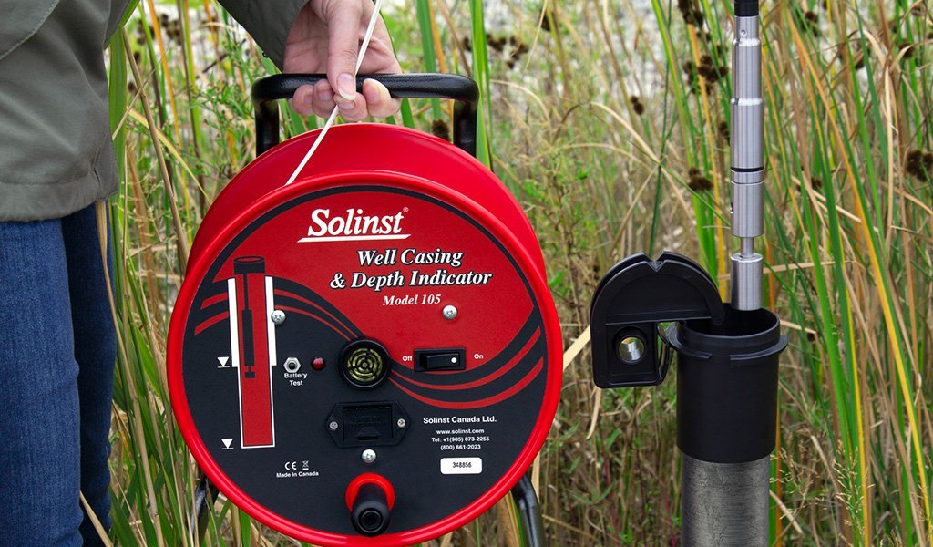 Indikator Selubung & Kedalaman Sumur Solinst Model 105 mendeteksi selubung sumur logam dan mengukur kedalaman sumur total menggunakan satu probe. Indikator Selubung dan Kedalaman Sumur sangat ideal untuk menentukan di mana selubung logam berakhir dan mulai pada konstruksi baru atau yang sudah ada, berguna saat memasang instrumentasi lubang bawah, dan mudah digunakan saat mengukur kedalaman sumur. Rakitan magnet yang kuat di probe mendeteksi casing sumur, sementara unit plunger di bagian bawah probe menandakan kedalaman sumur.